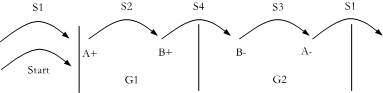 Control Task: Cylinder A extends and brings a job under the stamping cylinder B. Cylinder B then extends and stamps the job. Cylinder A can return only after cylinder B has retracted fully. An electro-pneumatic control circuit has to be developed for realizing the control task.